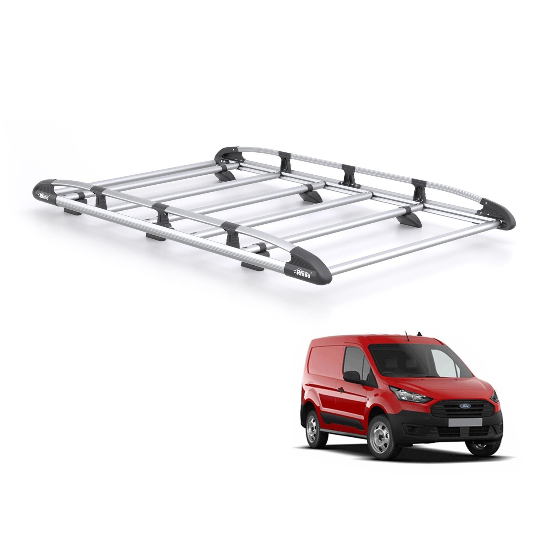 Rhino Kammrack's are constructed from lightweight aluminium and advanced polymer-based composites. The use of aluminium alloy allows for a corrosion and rust-resistant, durable Ford Transit Connect} roof rack. Its construction makes it an incredible 25% lighter, yet just as strong as its steel equivalent.