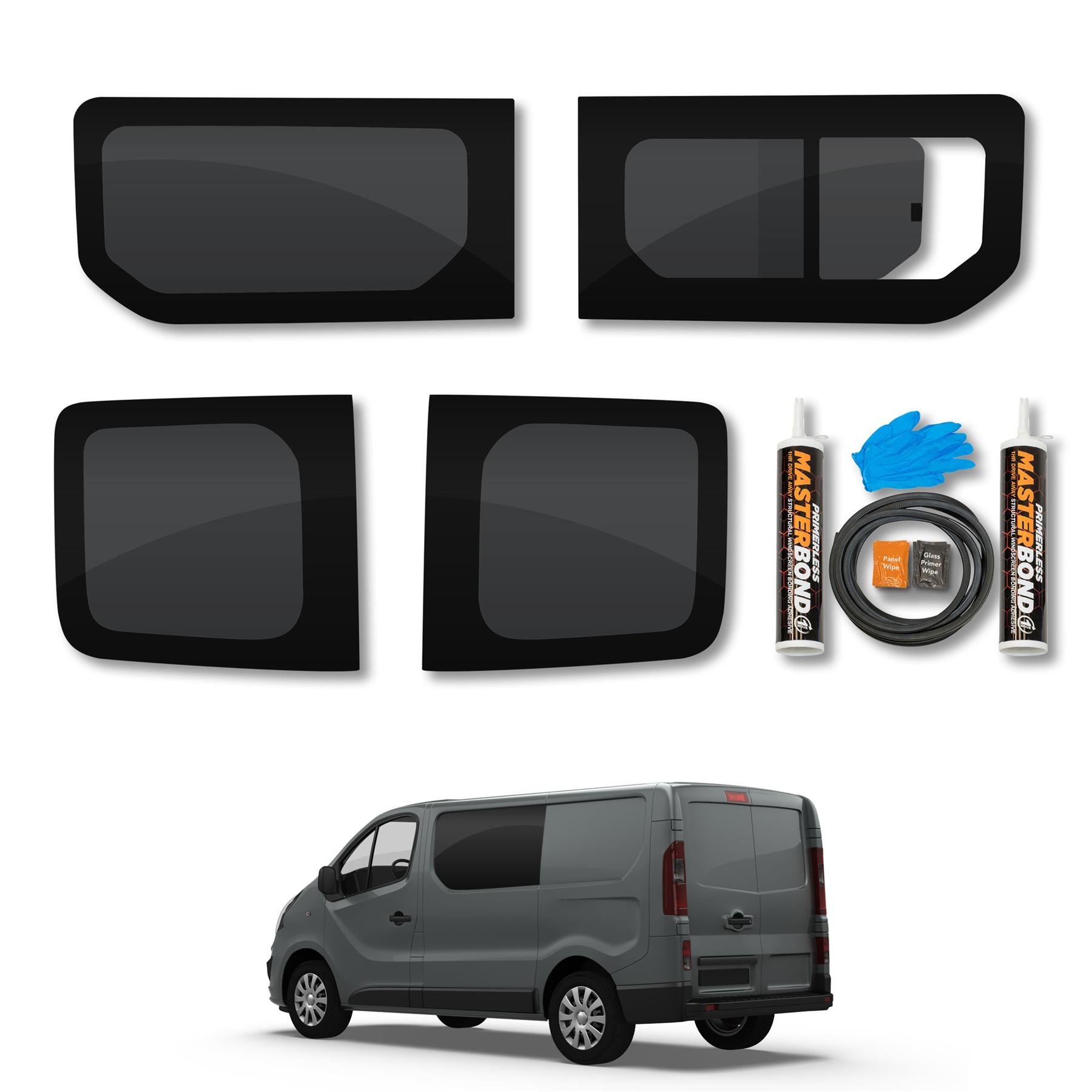 Your bundle includes everything needed for a fast, secure installation: primerless 1 hour drive-away bonding adhesive, panel wipe and glass primer wipe. Custom-shaped for a perfect fit and easy cleaning, this window is ideal for any professional van upgrade or conversion.