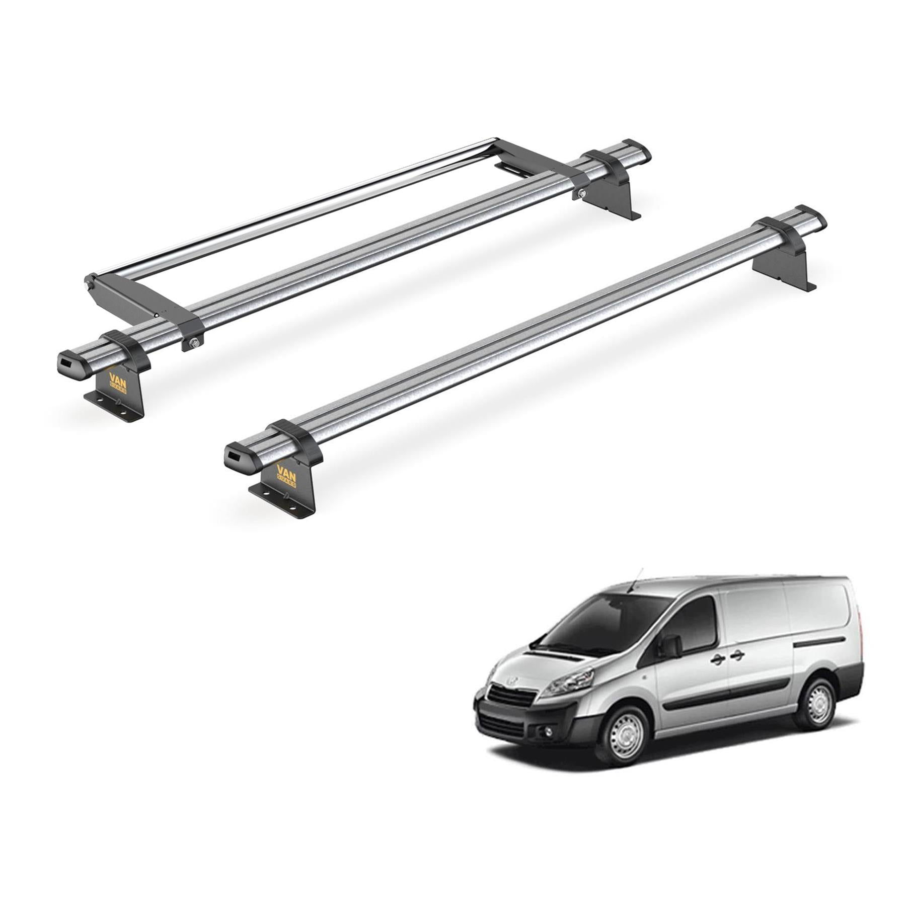 Peugeot Expert (2007-2016) - 2 Van Guard Ultibar Trade Roof Bars + Roller