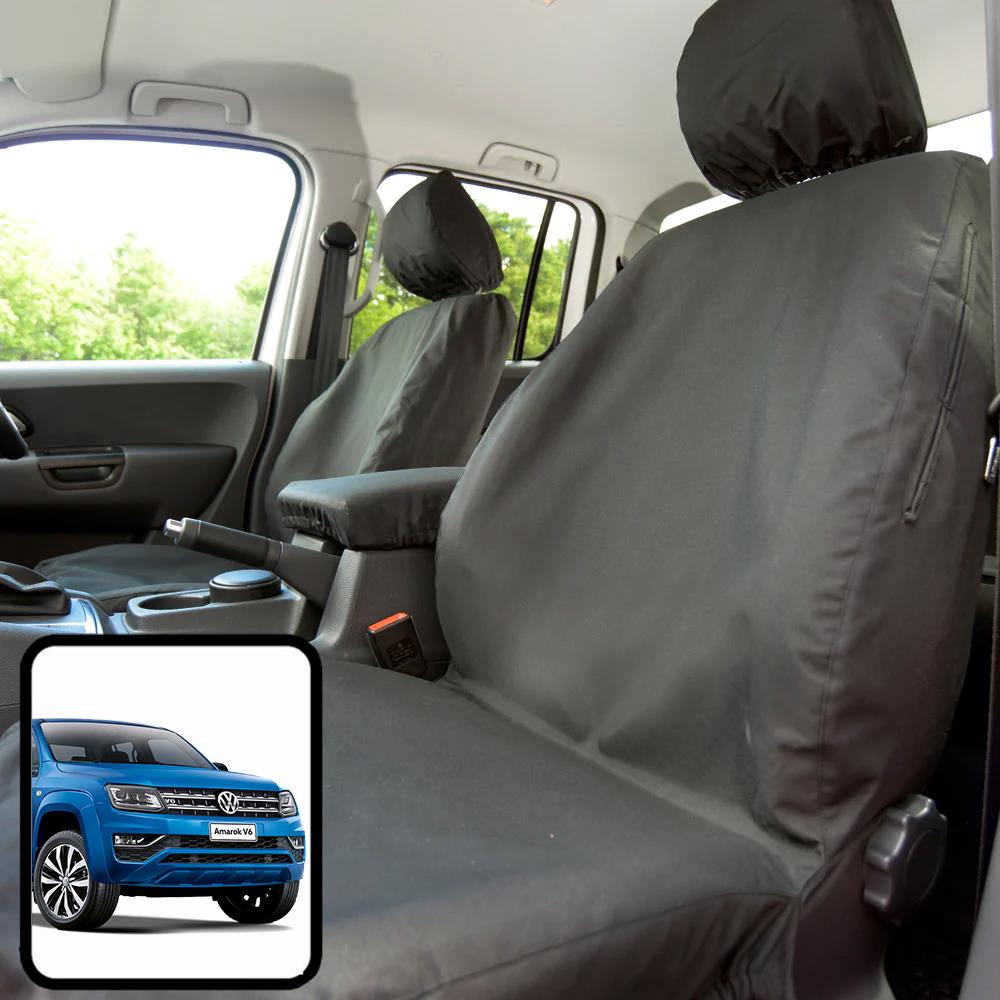 Tailored Driver & Front Passenger Seat Covers in Black (with 2x Headrest Covers and Central Armrest Cover) For VW Amarok (2011+)